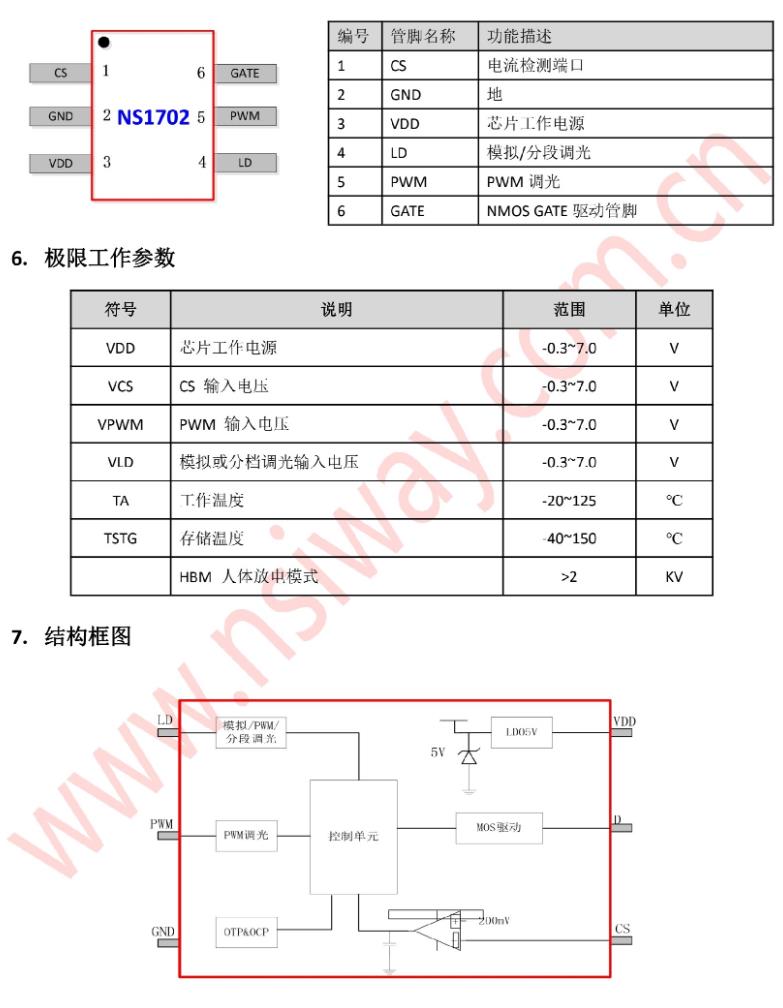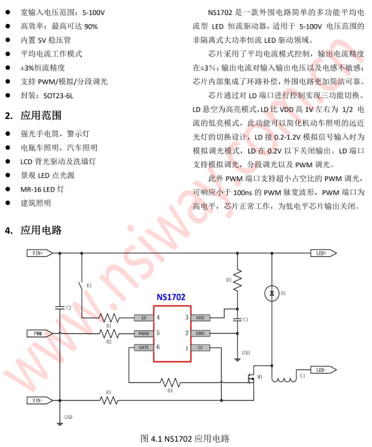 NS1702 多功能平均電流型 LED 恒流驅動器 100V