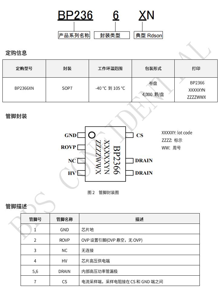 | BP2366EN | SOP7 | Y | 2.7Ω | 600V | External | Y | - | - | <240 |