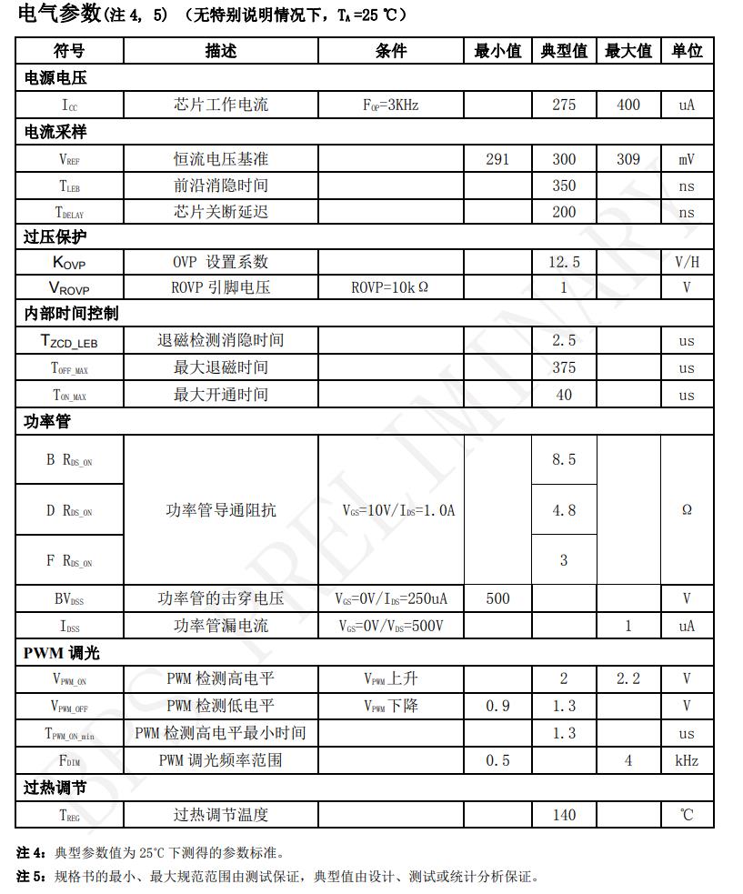 優勢 支持 1%-100%PWM 調光 全程模擬調光無頻閃 無需啟動電阻和 VCC 電容 內部集成 500V 功率管 ±5% LED 輸出電流精度 LED 開路保護 LED 短路保護 過熱調節功能 采用 SOP-8 封裝