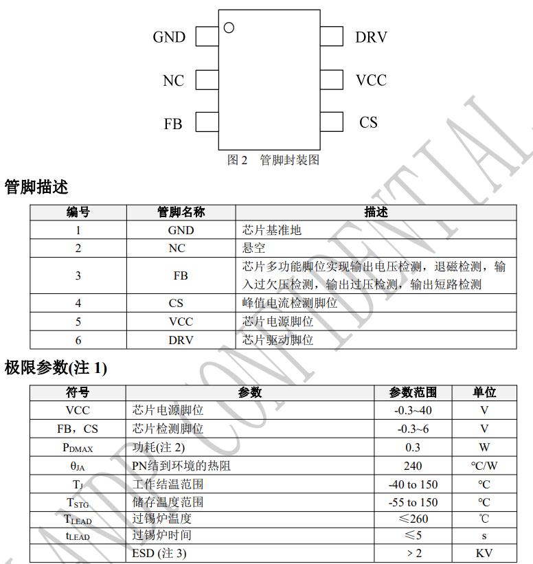 ? 內置環路補償方式,省略外圍補償元件 ? 內置軟啟動電路 ? 多重保護機制: ☆ 可編程輸入欠壓保護 ☆ FB反饋電阻開短路保護 ☆ CS開短路保護 ☆ 輸出短路保護 ☆ 輸出過壓保護 ☆ 電感過電流保護 ☆ 過溫保護(OTP) ☆ VCC過壓保護/VCC欠壓保護