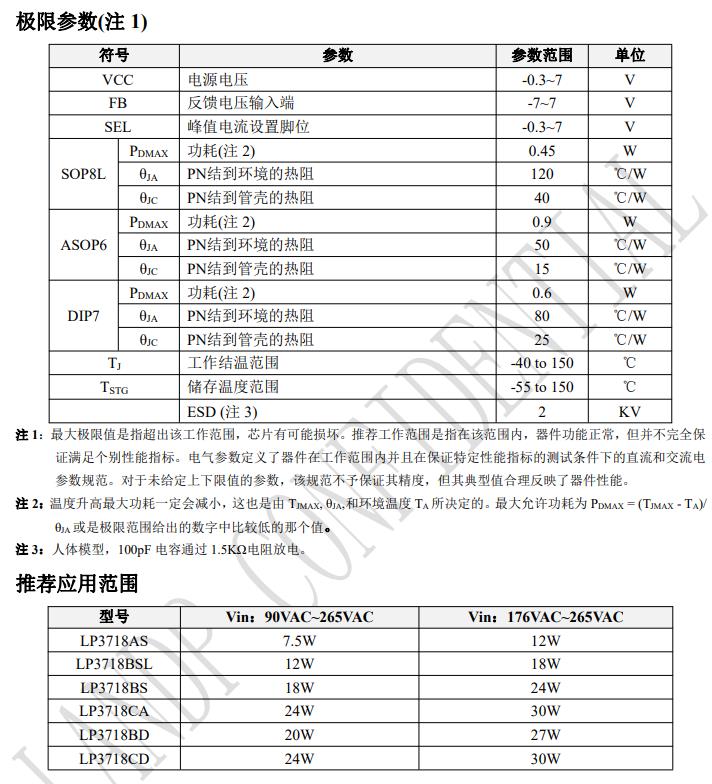 LP3718 采用 SOP8L、ASOP6 以及 DIP7 封裝