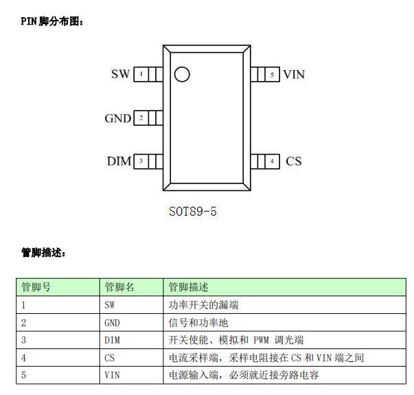 ? 極少的外部元件 ? 5V 到 30V 的電壓輸入范圍 ? ±3%的輸出電流精度 ? LED 開路保護 ? LED 短路保護 ? 過溫保護 ? 最大輸出電流 1.2A ? 復用 DIM 模擬調光 ? 復用 DIMPWM 調光 ? 高達 97%的效率 ? 輸出可調的橫流控制方法