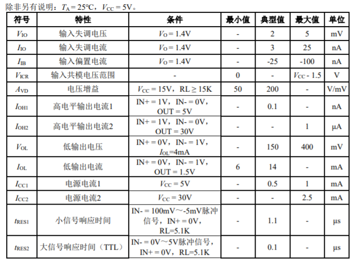 產(chǎn)品特征 ? 單電源或雙電源工作 ? 寬電源電壓范圍: 最大額定值:2V至36V 測(cè)試電壓為30V ? 低供電電流:0.5mA(典型值) ? 低輸入偏置電流:25nA(典型值) ? 低輸入失調(diào)電流:3nA(典型值) ? 低輸入失調(diào)電壓:2mV(典型值) ? 共模輸入電壓范圍包括接地 ? 差分輸入電壓范圍等于最大額定電源電 壓:±36V ? 低輸出飽和電壓 ? 輸出與TTL、MOS和CMOS兼容 ? 封裝形式:SOP8