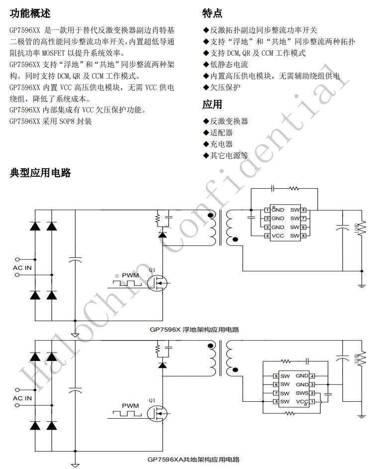 GP7596XX支持“浮地”和“共地”同步整流兩種架構。同時支持DCM,QR及CCM工作模式。