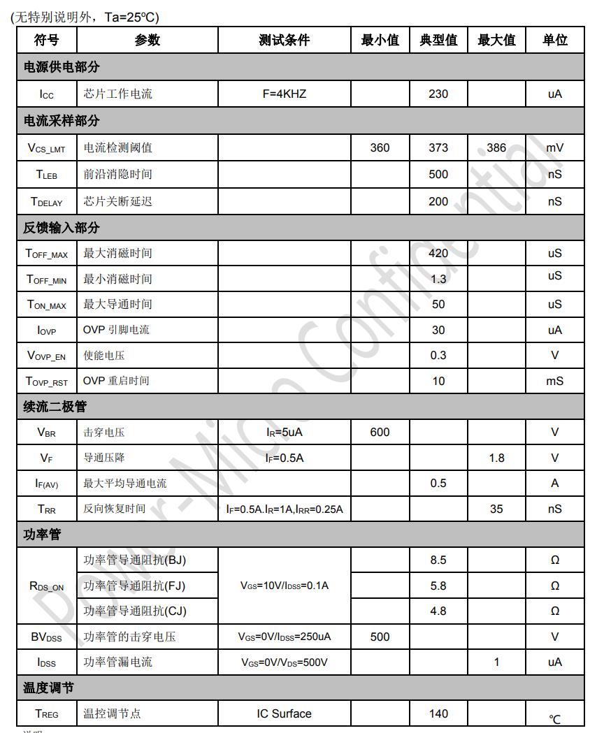 特點 ? 兼容PM2116X引腳 ? 集成600V超快恢復二極管 ? 無VCC電容、無啟動電阻 ? 集成高壓供電功能 ? 外置防潮OVP功能 ? 低母線電壓下不閃燈
