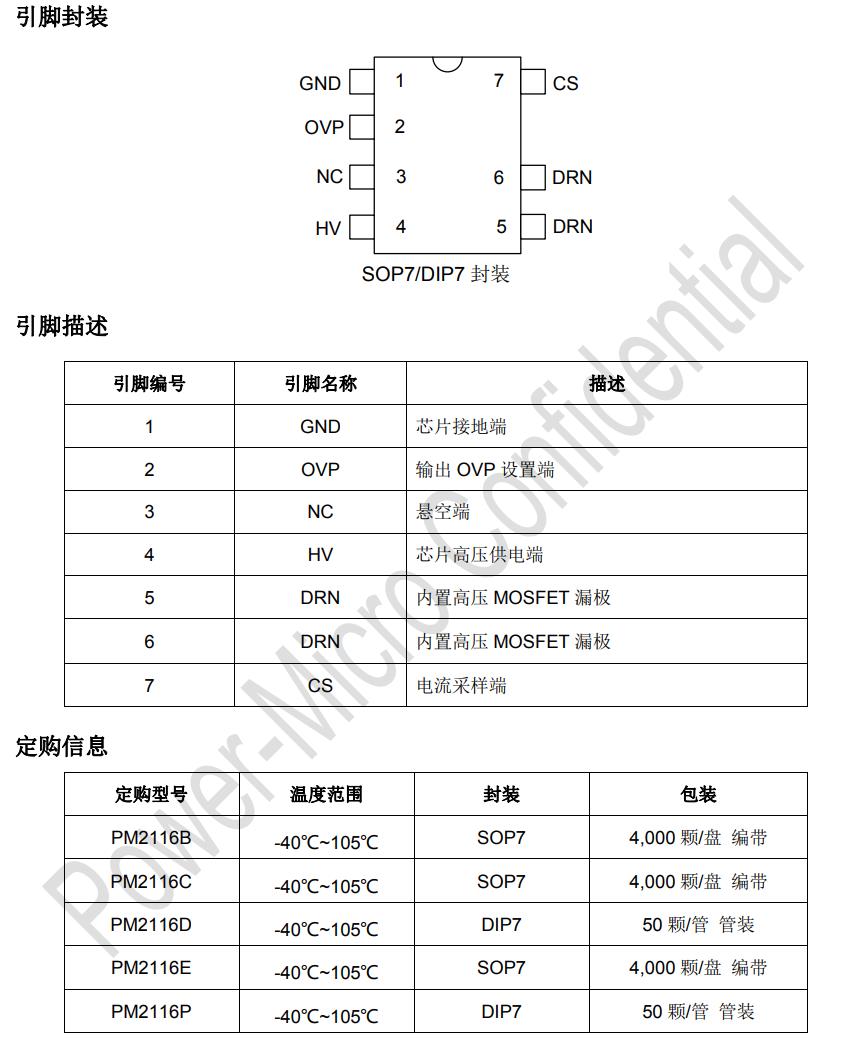 PM2116X是一款集成高壓啟動的高精度LED恒流 驅動芯片,適用于85V-265V全范圍交流輸入電壓的 非隔離降壓型LED恒流電源系統。
